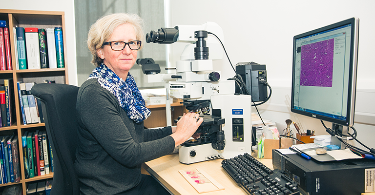 A: I was born in Sydney, Australia, and undertook my general medical training at the University of New South Wales, before doing a PhD at the University of Sydney. In 1994, I worked with the world-renowned eye pathologist, Professor William Lee in Glasgow, who confirmed my resolve to pursue this subspecialty. In 1995, I started my General and Specialist Pathology Training in Berlin, where I lived for a further 10 years with my husband, Professor Heinrich Heimann. We moved to Liverpool and I commenced working as a Consultant Pathologist in 2006.